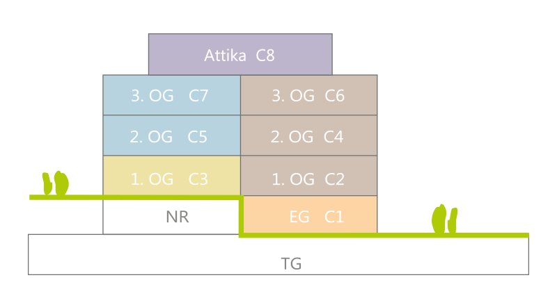 Die Balkon- und Gartenseiten sind alle gegen Süden ausgelegt. Sie geniessen eine herrliche Weitsicht in die Alpen (vom Säntis bis zu den Berner Alpen). Hier lebt es sich aussichtsreich als Paar, als Familie oder als Einzelperson.